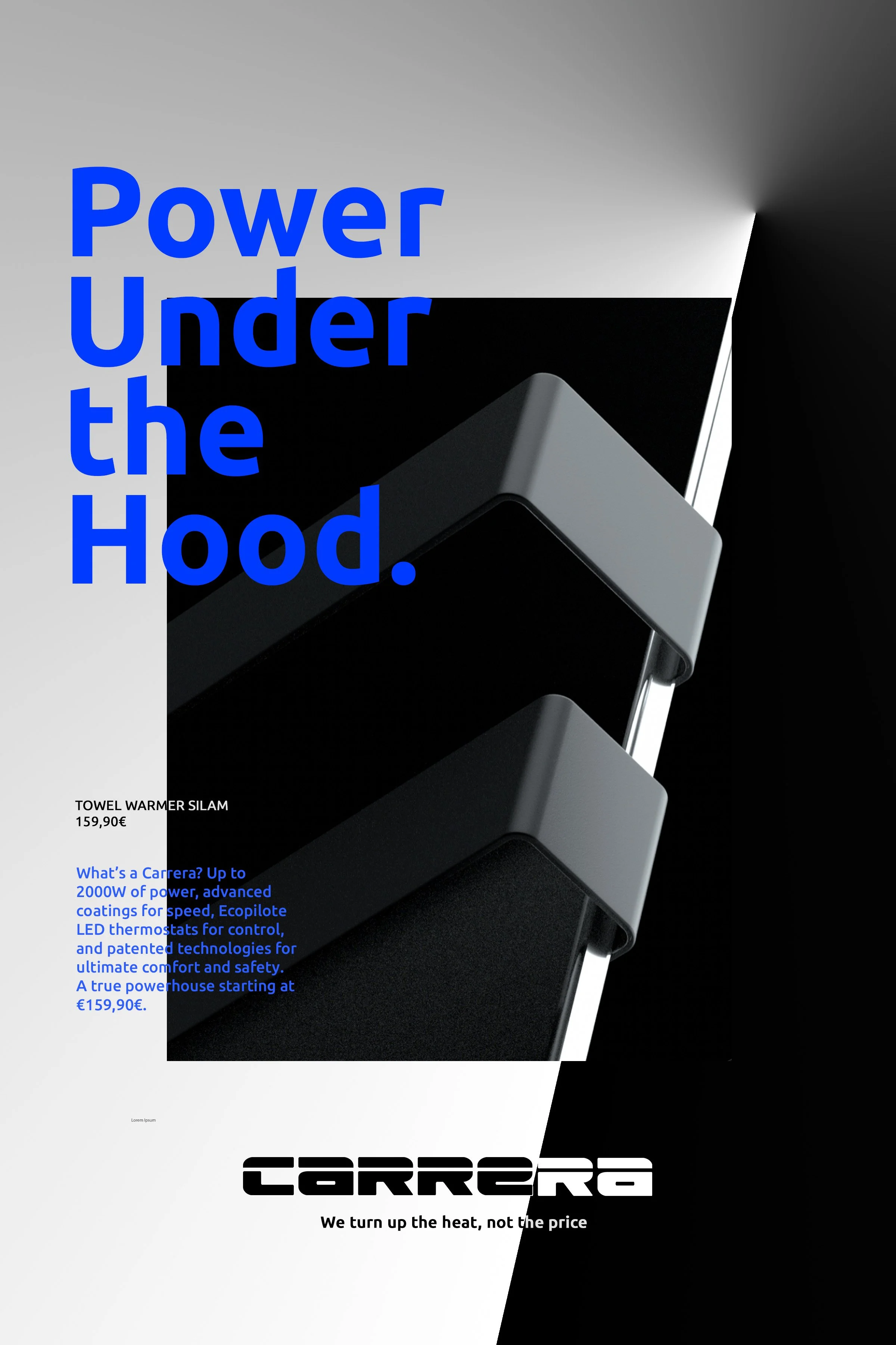 A poster series that hacks the language of luxury car advertising — turning Carrera radiators into high-performance machines, powerful, desirable, and accessible.