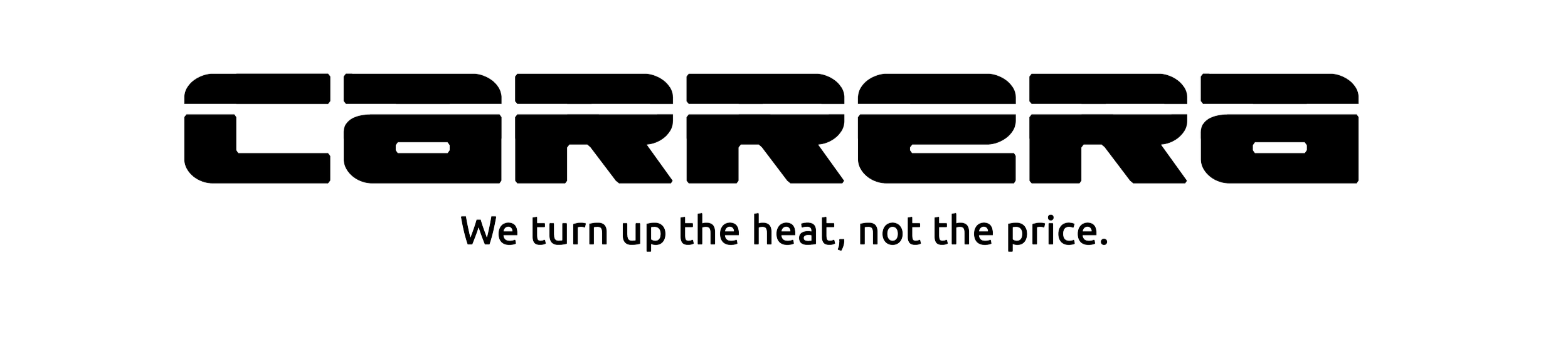 A logo inspired by race car aesthetics, paired with the brand line ‘We turn up the heat, not the price’.
